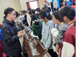 宣讲结束后,现场开展了矿物标本与古生物化石展览活动。地球科学俱乐部的志愿者通过实物展示与现场讲解相结合的方式,为高中生们普及矿物识别、化石形成及地球演化等基础知识。现场互动热烈,高中生们踊跃驻足观看、提问交流,在触摸与聆听中感受地学的神奇魅力。